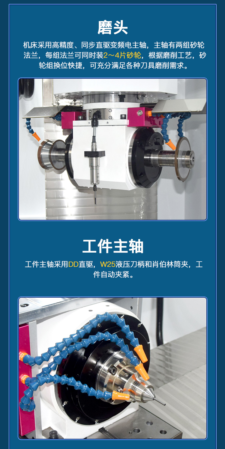 一、機(jī)床簡介1.應(yīng)用范圍:5軸5聯(lián)動數(shù)控刀具磨床,適用于大直徑回轉(zhuǎn)類刀具的磨削和重磨,能在一次裝夾的情況下完成整個磨削和修磨過程,可加...